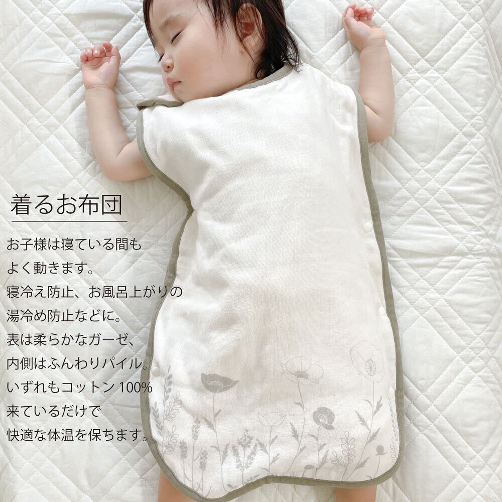ふんわりコットンのスリーパー。 表はガーゼ、裏はパイルで肌触りもよく、一年を通してご使用いただけます。