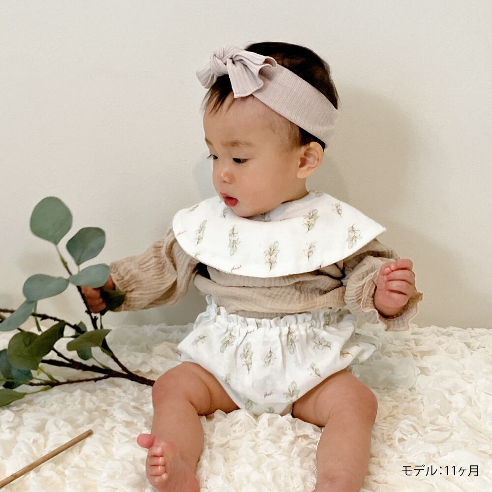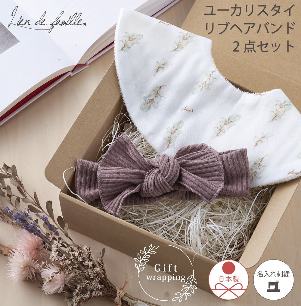 【brush brushコラボ】ユーカリ柄スタイ&リブヘアバンド2点セット 出産祝い 誕生日祝い ベビーギフト 赤ちゃん