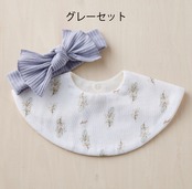 brushbrushさんデザインの吸水性の良いコットンガーゼのスタイとヘアバンドのギフトセット。