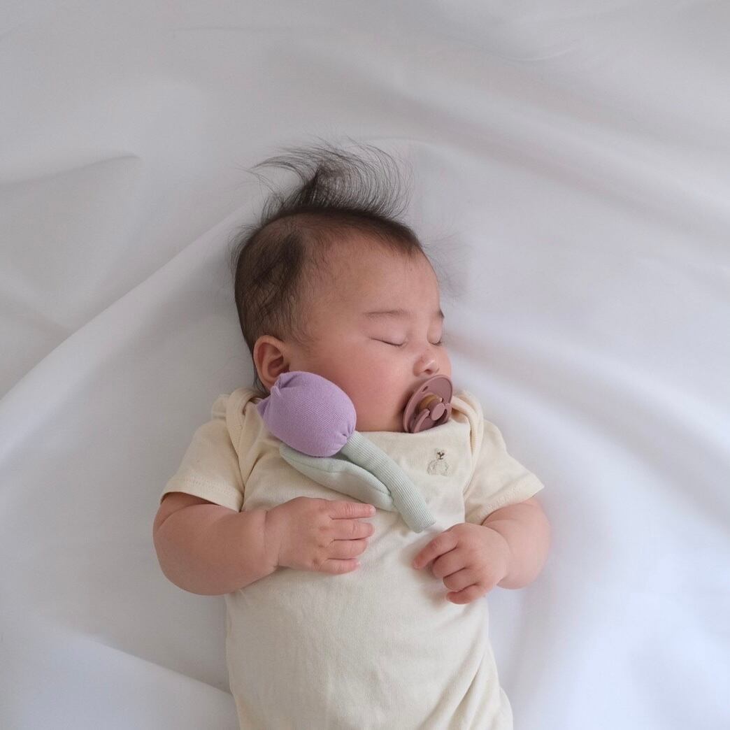茎部分は、ベビーの握りやすい細長い形で、「にぎにぎ」がわりにも。