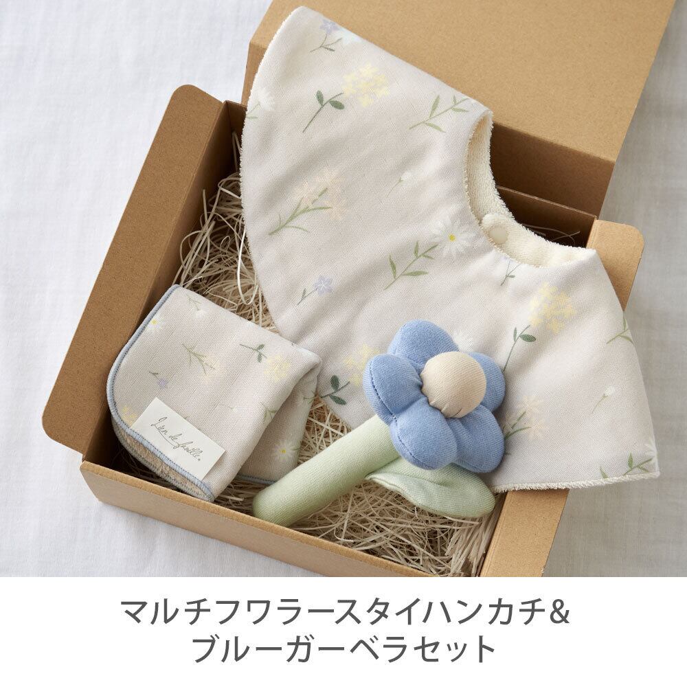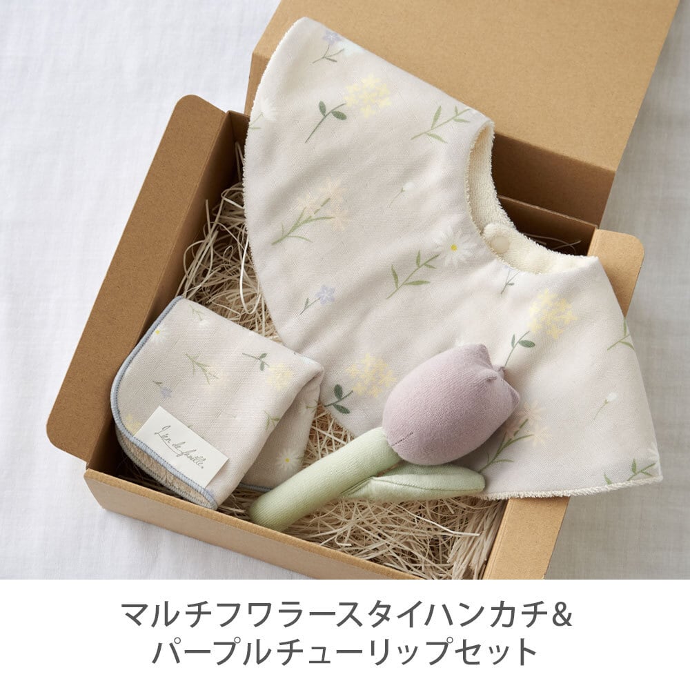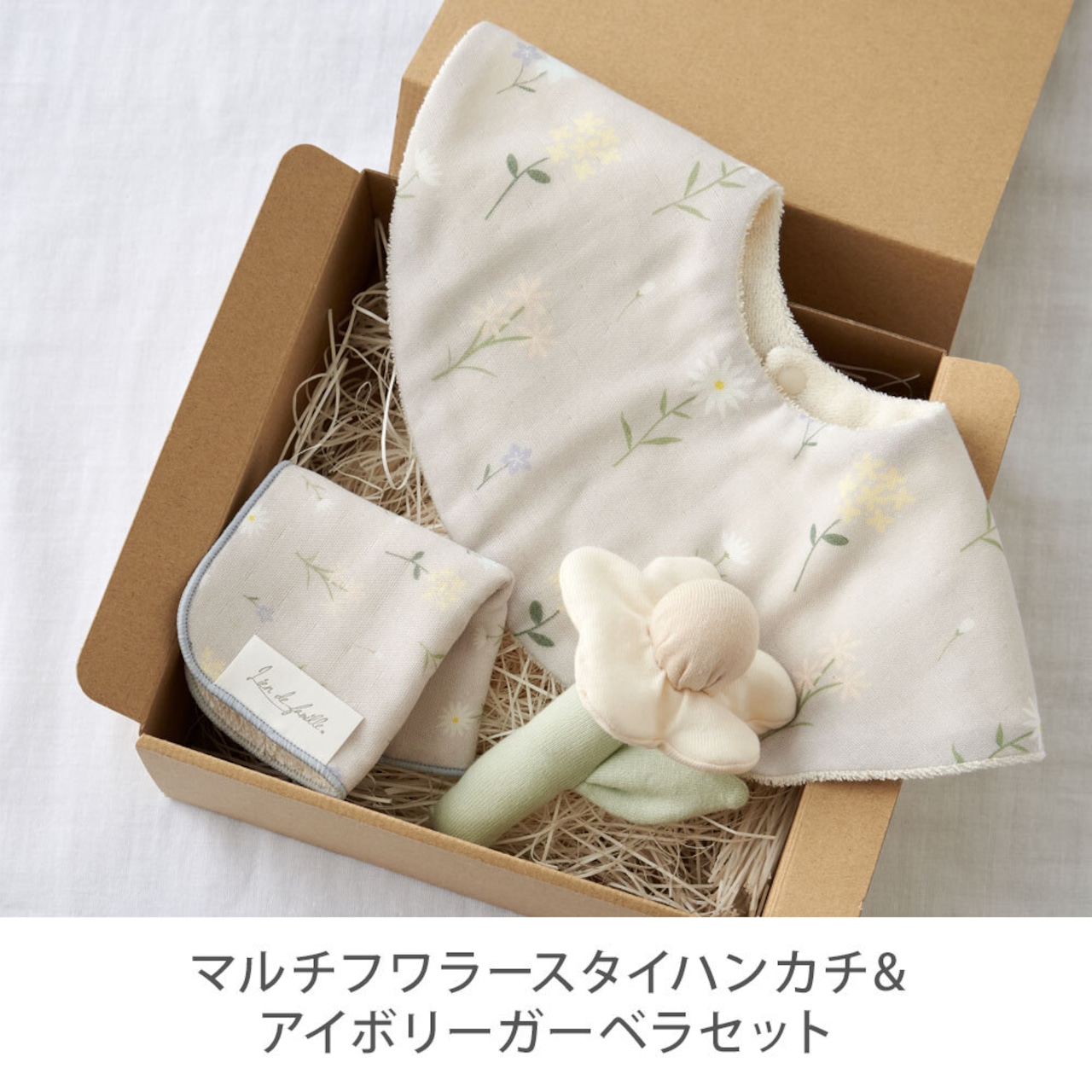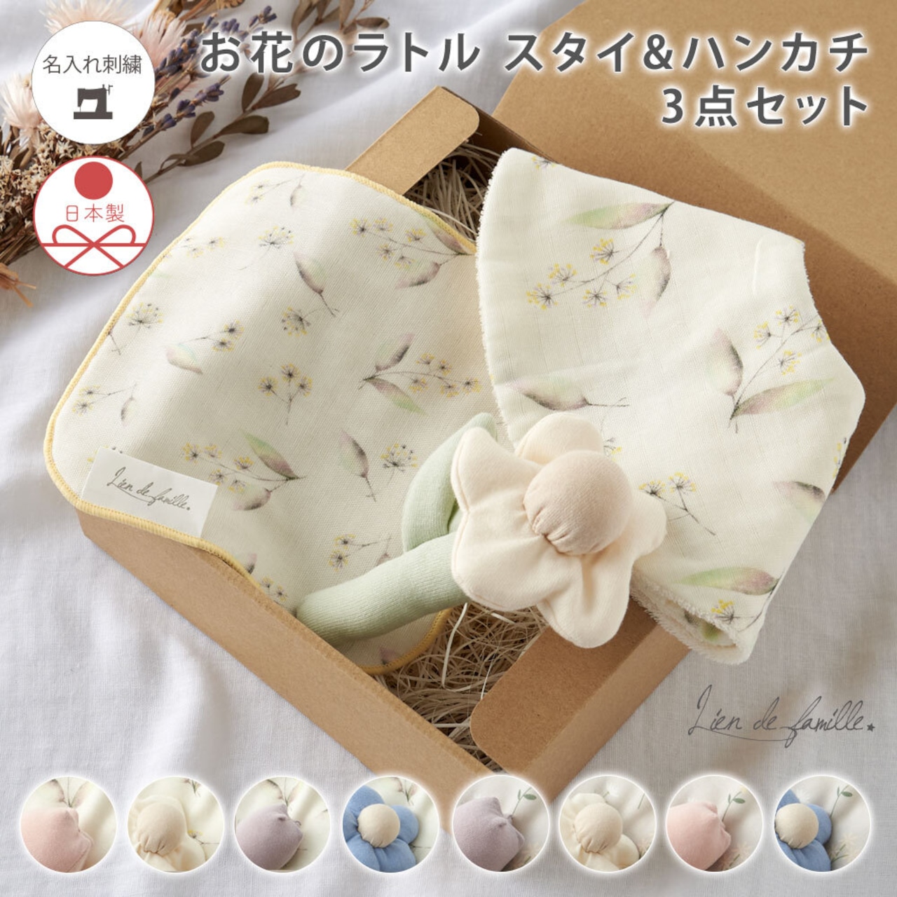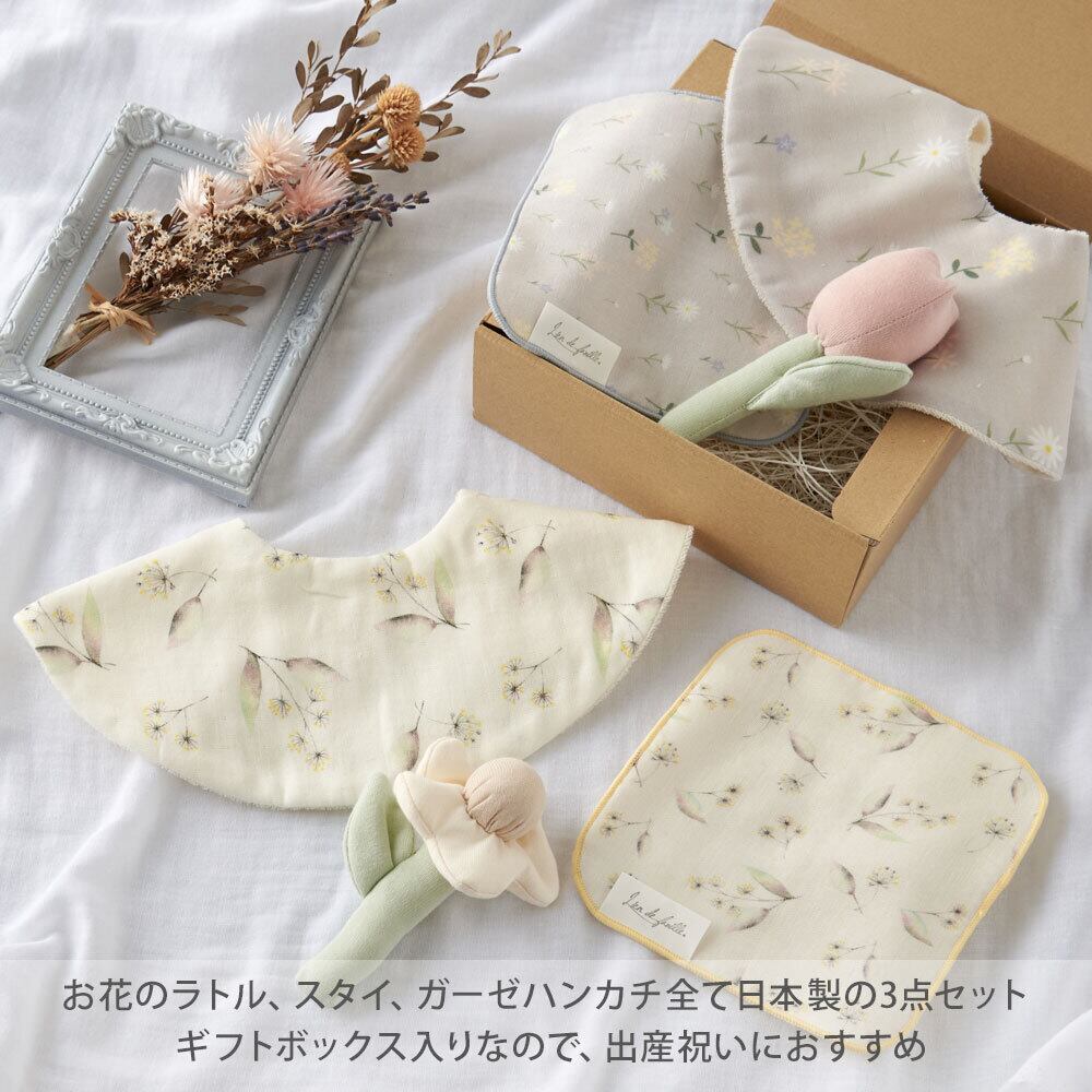 お花のラトルと花言葉スタイとハンカチ3点ギフトセット