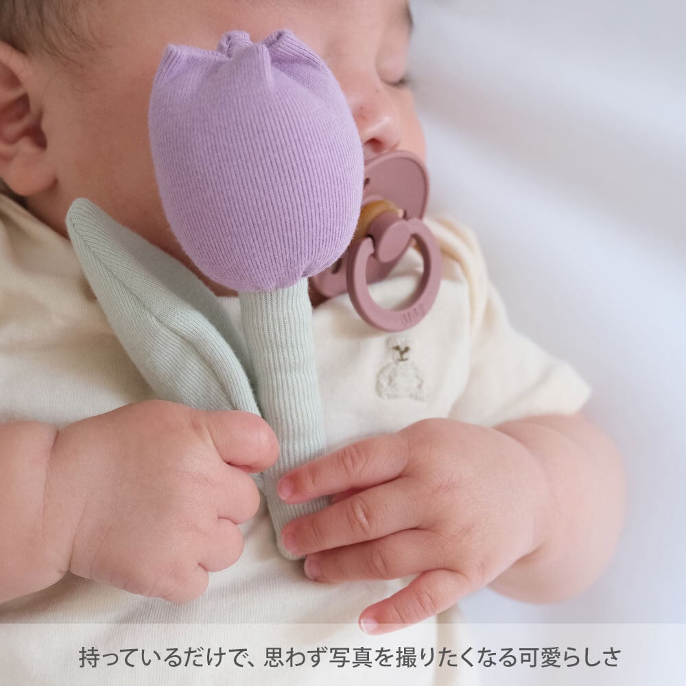 茎部分は、ベビーの握りやすい細長い形で、「にぎにぎ」がわりにも。