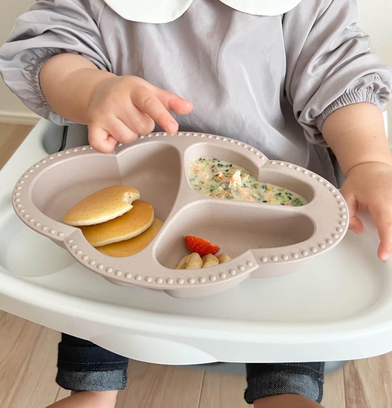 ★食材をすりつぶしながら食べさせることができる星型の突起付き。
