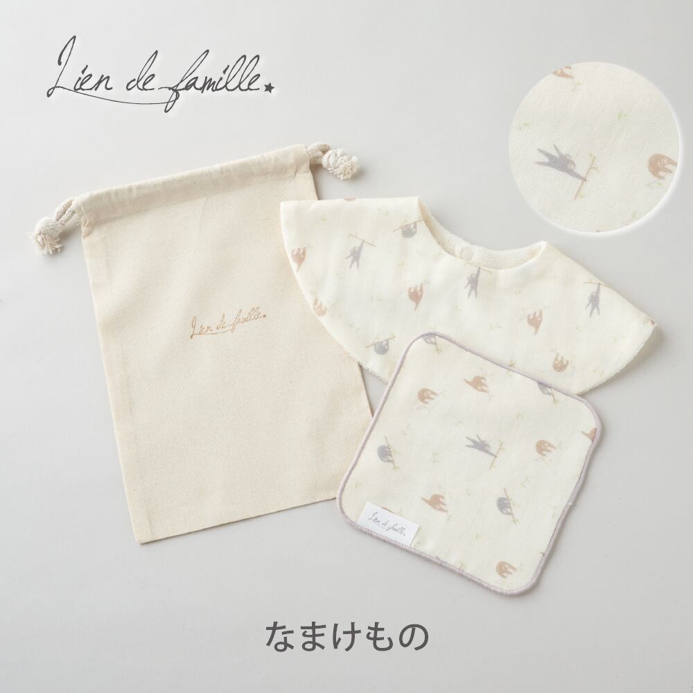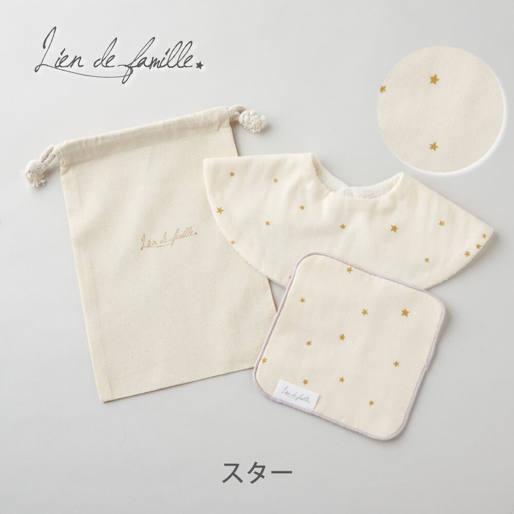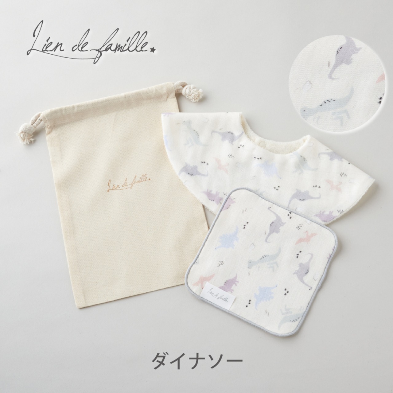 \ナチュラル好きの方におすすめ/巾着付き!日本製ガーゼのスタイ・ハンカチのセット プレゼント 名入れ よだれかけ ビブ 綿100% スナップボタン 出産祝い プチギフト 送料無料 ベビー ギフトセット スタイ セット ハンカチ 日本製 名前入り 刺繍 男の子 女の子 新生児 ギフト プレゼント 誕生日 赤ちゃん コットン 男女兼用 入園準備 入園御祝 全12種 Lien de famille リヤンドファミーユ