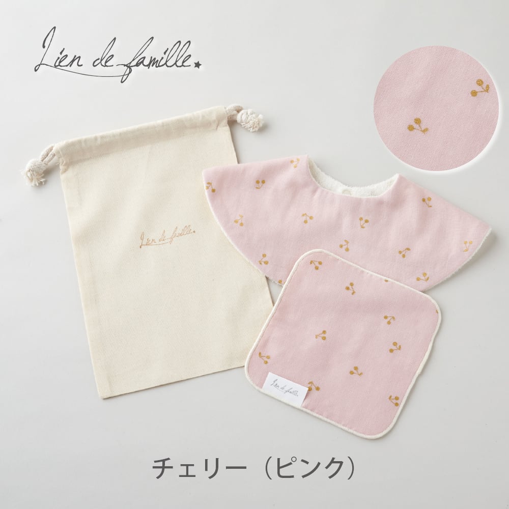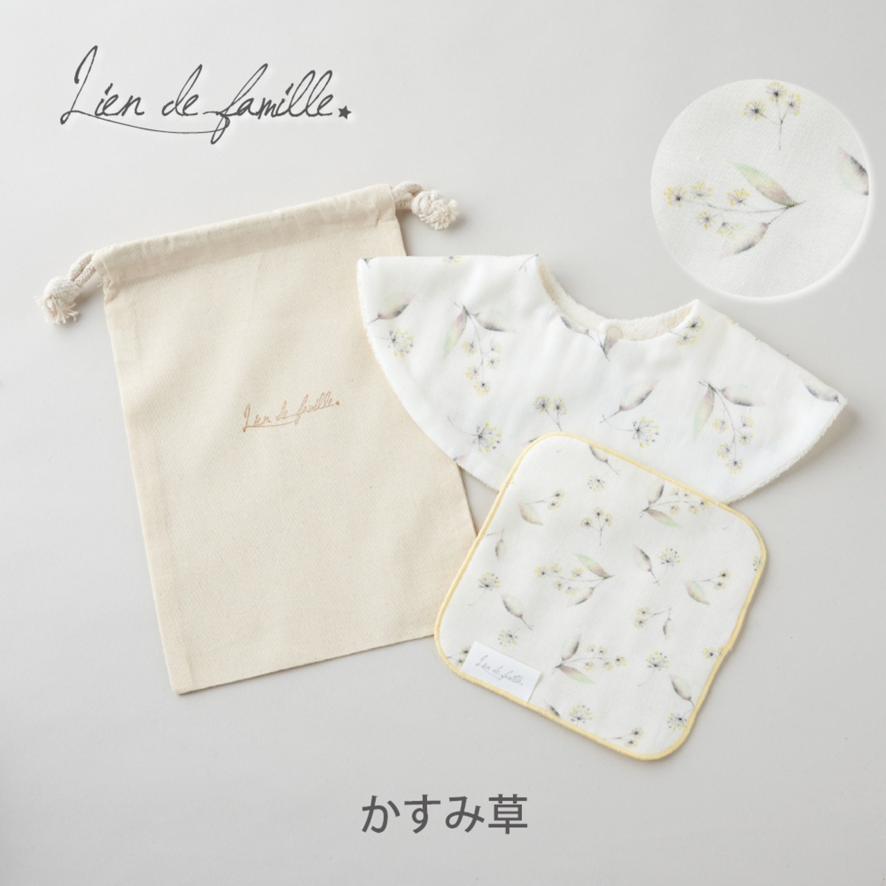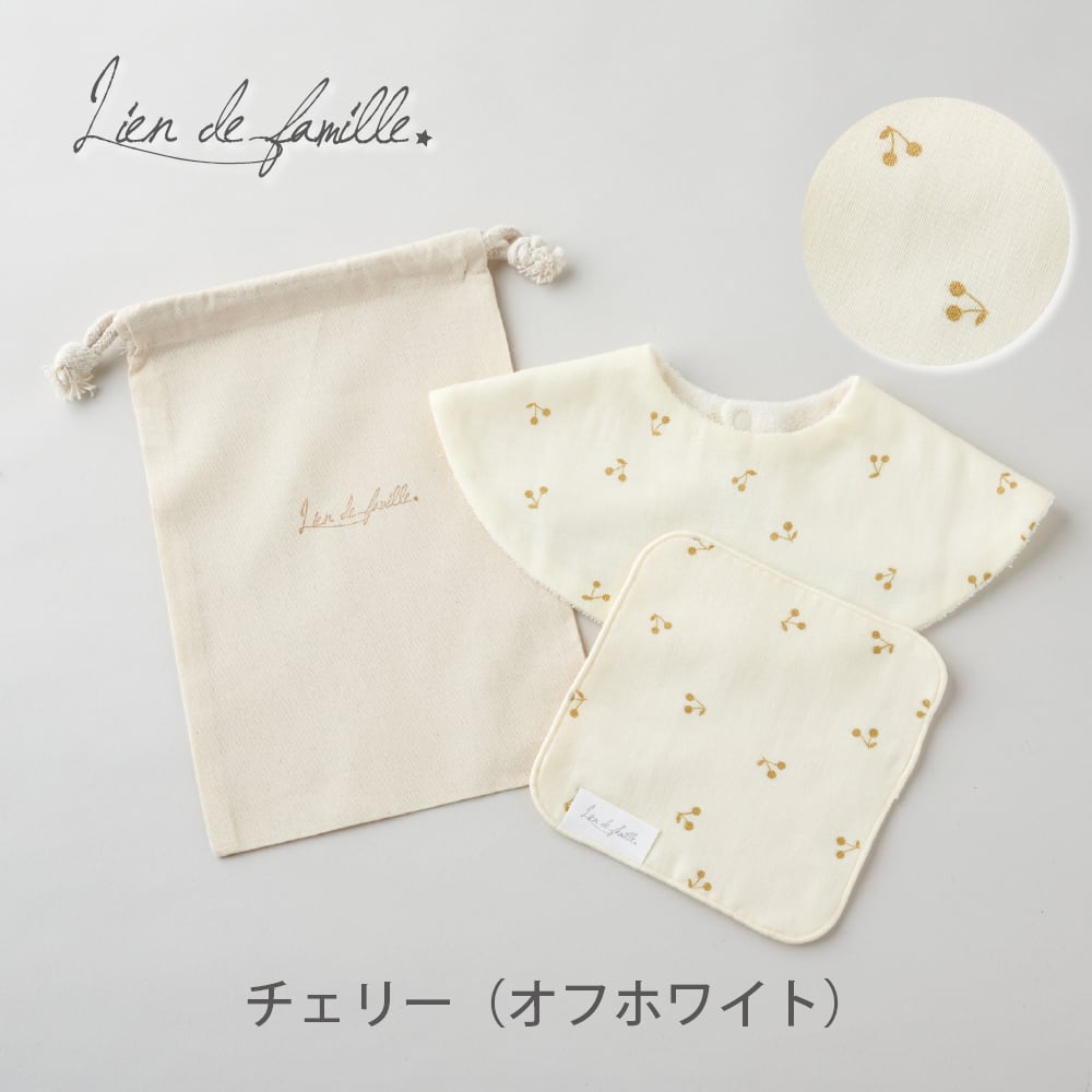 \ナチュラル好きの方におすすめ/巾着付き!日本製ガーゼのスタイ・ハンカチのセット プレゼント 名入れ よだれかけ ビブ 綿100% スナップボタン 出産祝い プチギフト 送料無料 ベビー ギフトセット スタイ セット ハンカチ 日本製 名前入り 刺繍 男の子 女の子 新生児 ギフト プレゼント 誕生日 赤ちゃん コットン 男女兼用 入園準備 入園御祝 全12種 Lien de famille リヤンドファミーユ