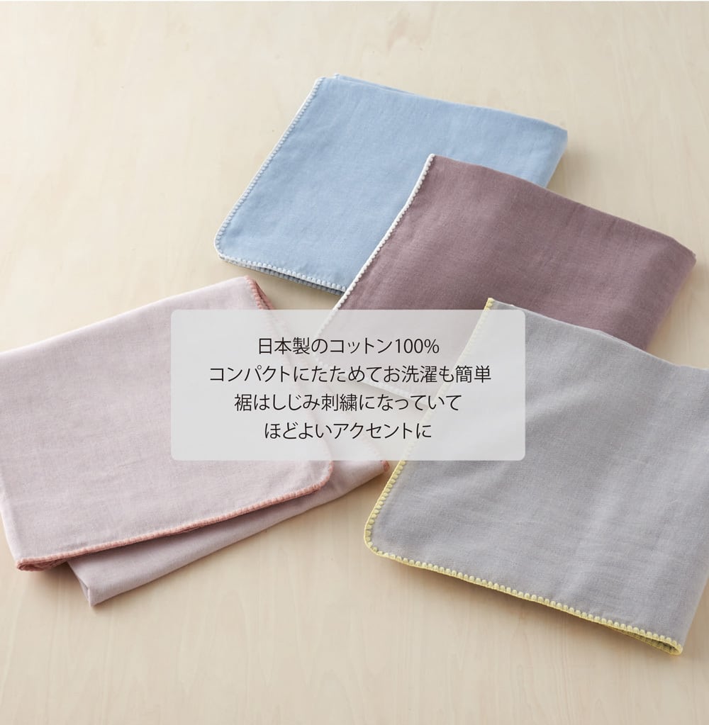 コットン100%なので、通年で使用しやすく、持ち運びも気軽にできます。