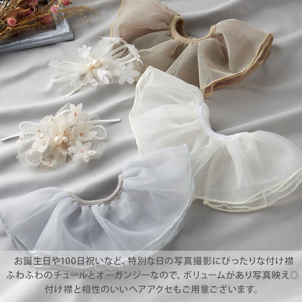 \Anniversaryイベントに/ふわふわチュールリバーシブル付け襟 リヤンドファミーユ lien de famille ベビー付け襟 アニバーサリー チュール 付け襟 キッズ付け襟 新生児 ニューボーンフォト お宮参り 100日 ハーフバースデー くすみカラー プレゼント ギフト 結婚式 発表会 女の子 男の子