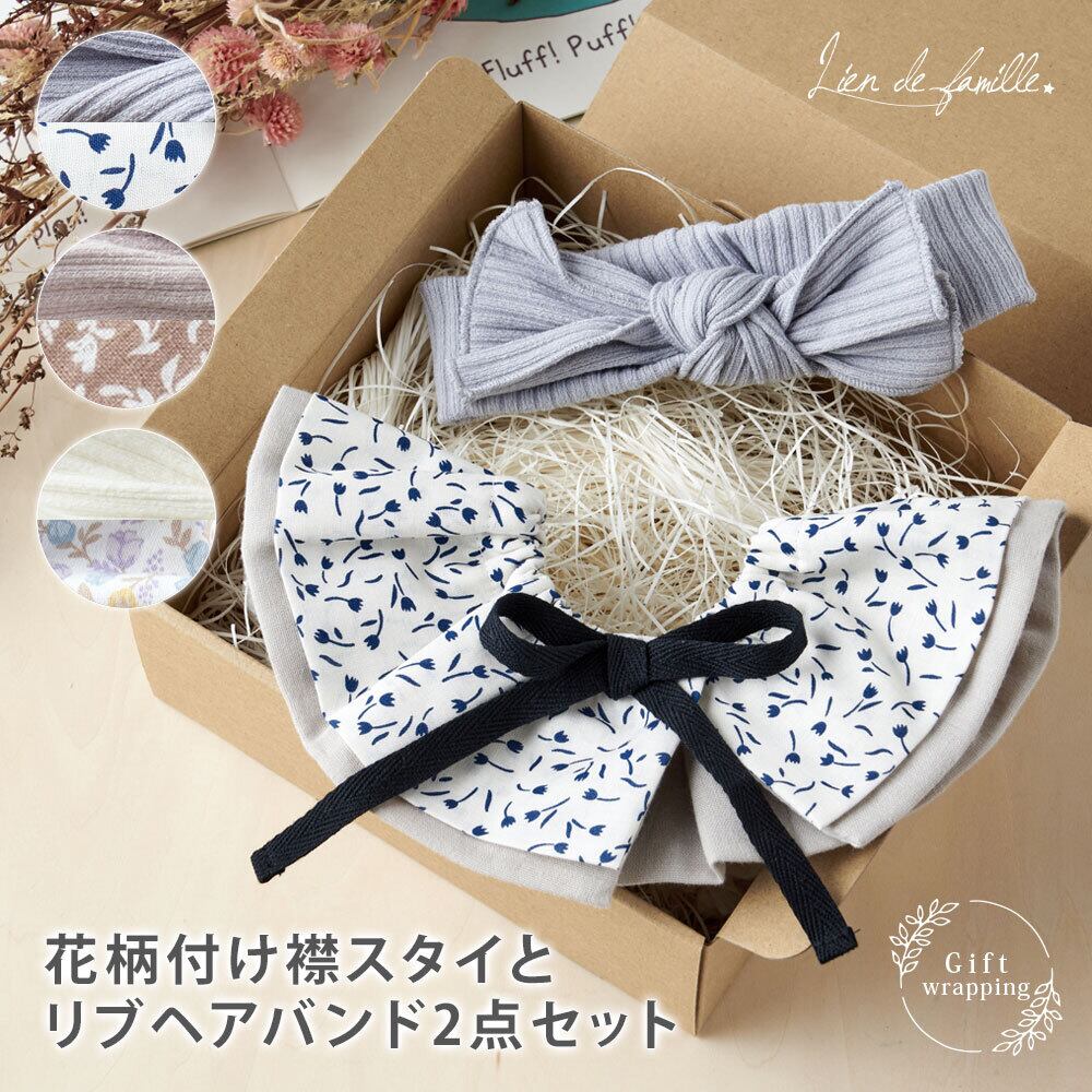 \お祝いに!/3色花柄の付け襟スタイとリブヘアバンドセット リヤンドファミーユ Lien de famille ベビーギフト プレゼント 誕生日プレゼント 付け襟 スタイ ヘアバンド 女の子 つけえり ベビー 付け襟 よだれかけ ビブ リブヘアバンド 1歳 誕生日 記念日 アニバーサリー 100日祝い 出産祝い 記念フォト ギフト