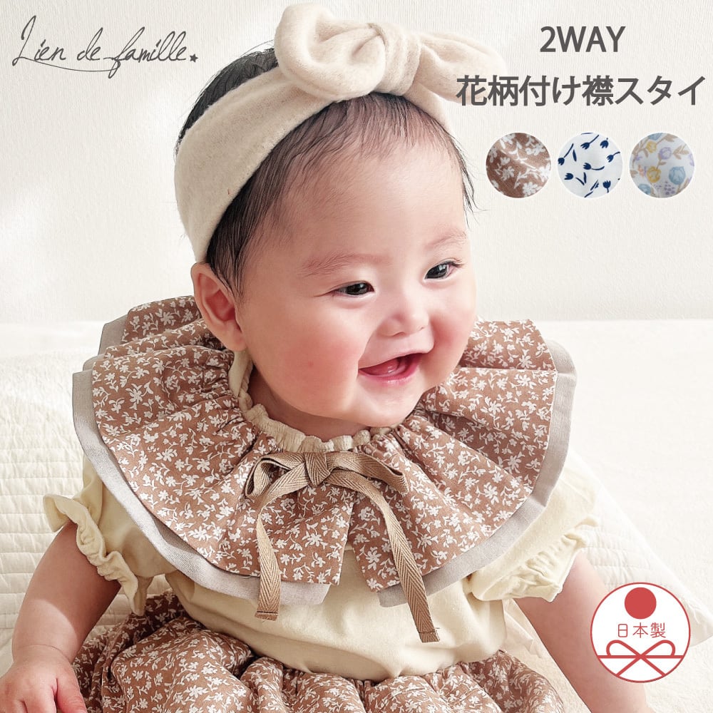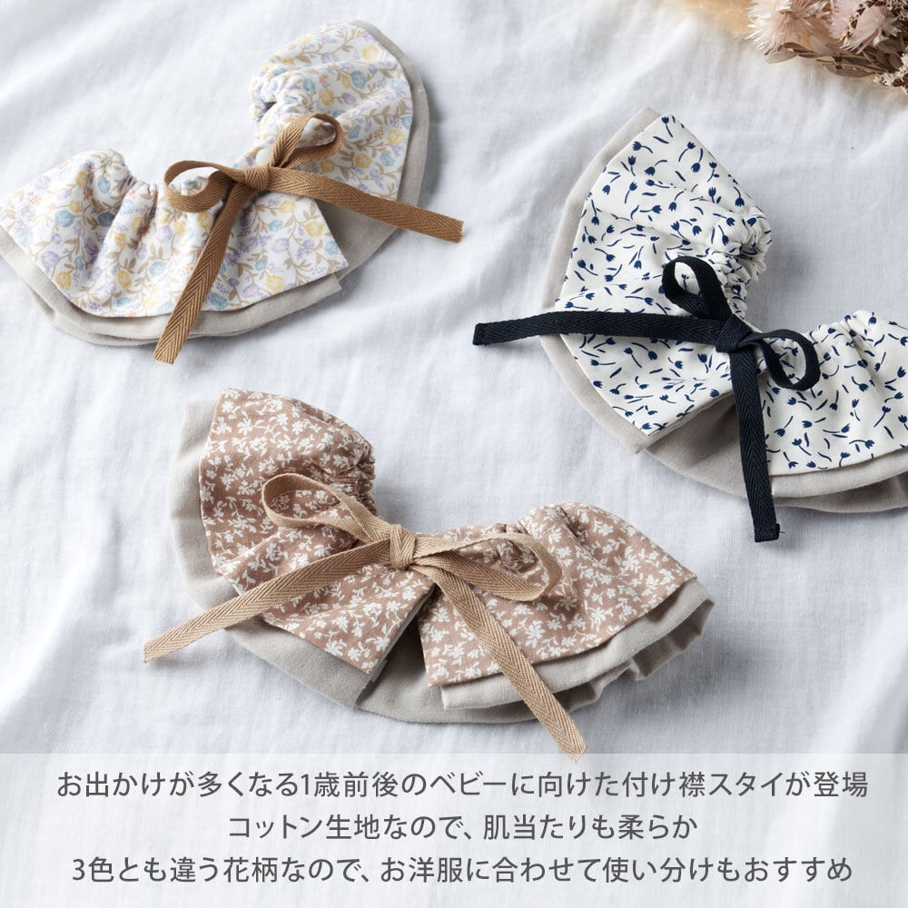 \お洋服を華やかに!/3色花柄の付け襟スタイ リヤンドファミーユ Lien de famille 【前後2WAY】付け襟スタイ スタイ つけえり ベビー 女の子 よだれかけ ビブ お出かけ 1歳 誕生日 記念日 アニバーサリー 100日祝い 出産祝い 記念フォト スタジオフォト プレゼント ギフト