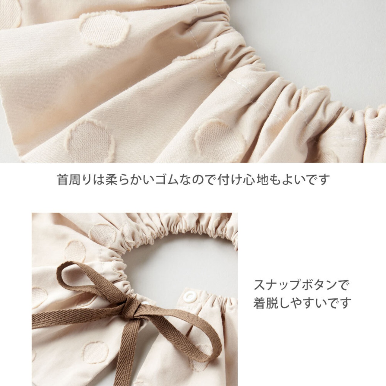 コットン生地なので、肌当たりも良く、首周りも総ゴムで付けやすいです。