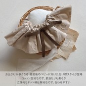 コットン生地なので、肌当たりも良く、首周りも総ゴムで付けやすいです。