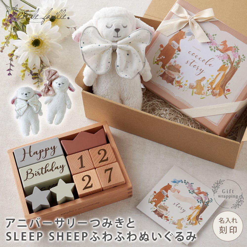 \毎日の成長記録やちょっとした記念日に アニバーサリー積み木とSLEEP SHEEPふわふわぬいぐるみのセット 赤ちゃん 0歳 誕生日プレゼント ?月齢フォト マタニティーフォト 出産祝い 名前入り ベビー 積み木 ぬいぐるみ 名入れ ギフトセット 月齢 フォト メモリー ふわふわ おしゃれ もちもち ベビー 女の子 男の子 新生児 誕生日 木製 シンプル かわいい 1歳 20cm 30cm Lien de famille リヤンドファミーユ