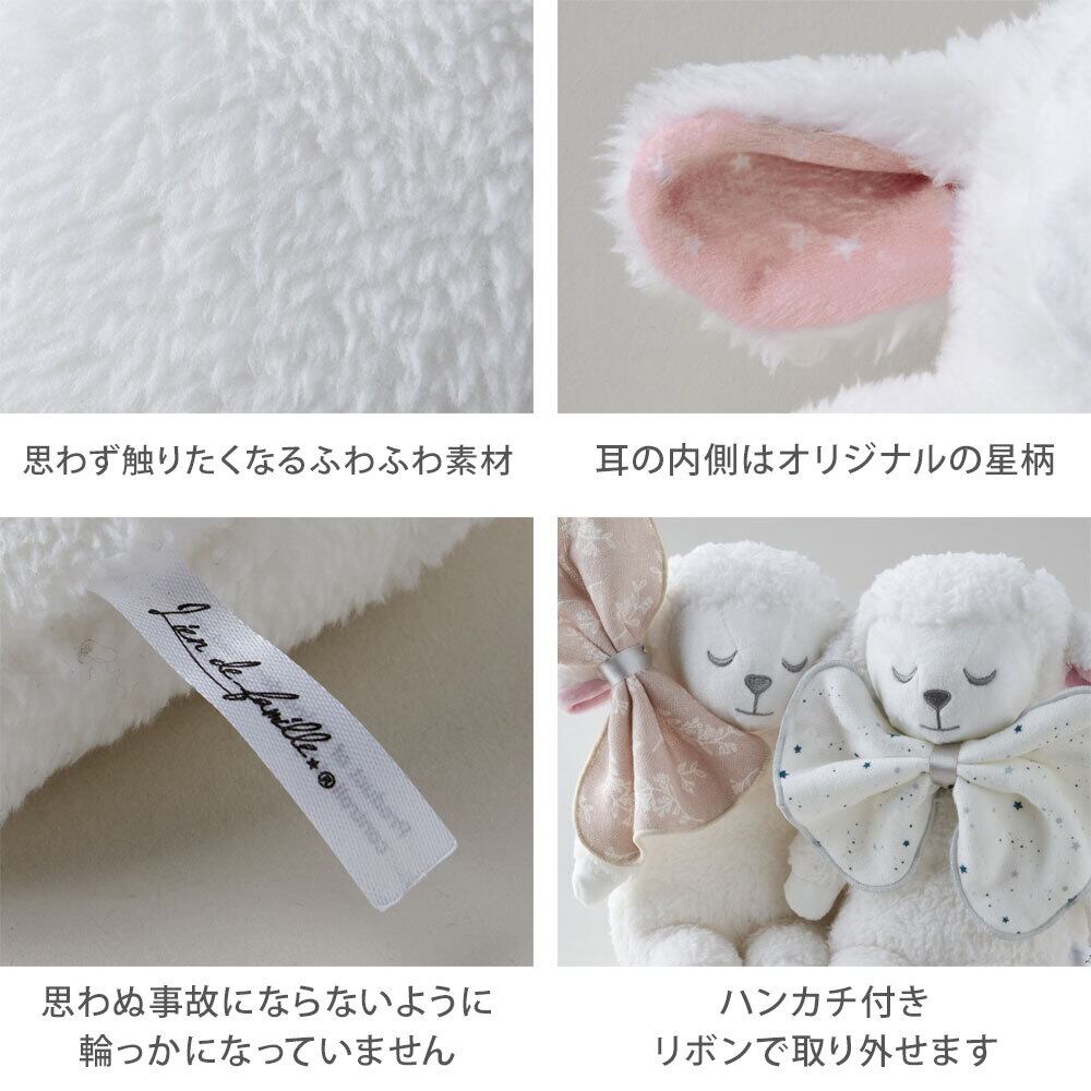 Lien de familleオリジナルのひつじのぬいぐるみはふわふわ素材で、お子様の手に持ちやすいサイズ感です。