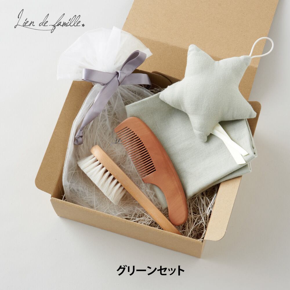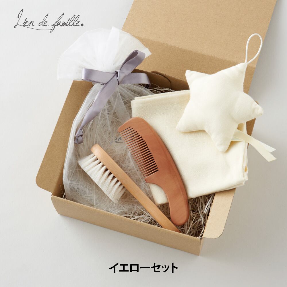 \赤ちゃんの初めての身だしなみアイテムに/名入れ刻印可能 ベビーウッドブラシ・スターラトル付きガーゼハンカチセット?? こども用 新生児 ベビー用 ブラシ くし 髪の毛 赤ちゃん 【ポイントアップ中】ベビー ヘアブラシ コーム 日本製 ラトル ガーゼハンカチ ガーゼハンカチ セット ループ付き 名入れ 出産祝い 男の子 女の子 出産準備 プレゼント ギフト 綿100% 名前入り 全4色 Lien de famille リヤンドファミーユ