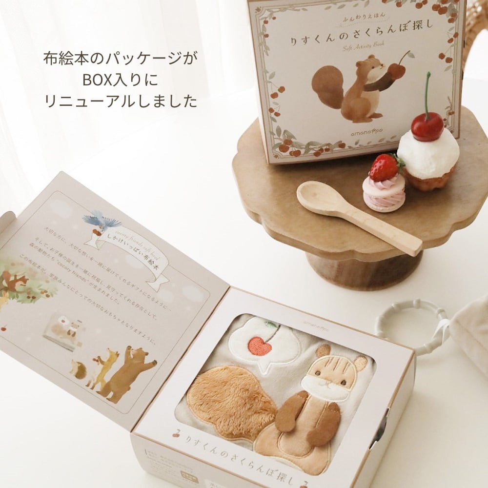 ここりーフレンズのりすさんをモチーフにした布絵本。