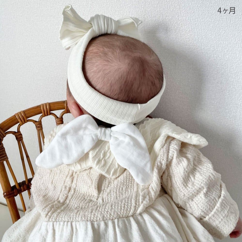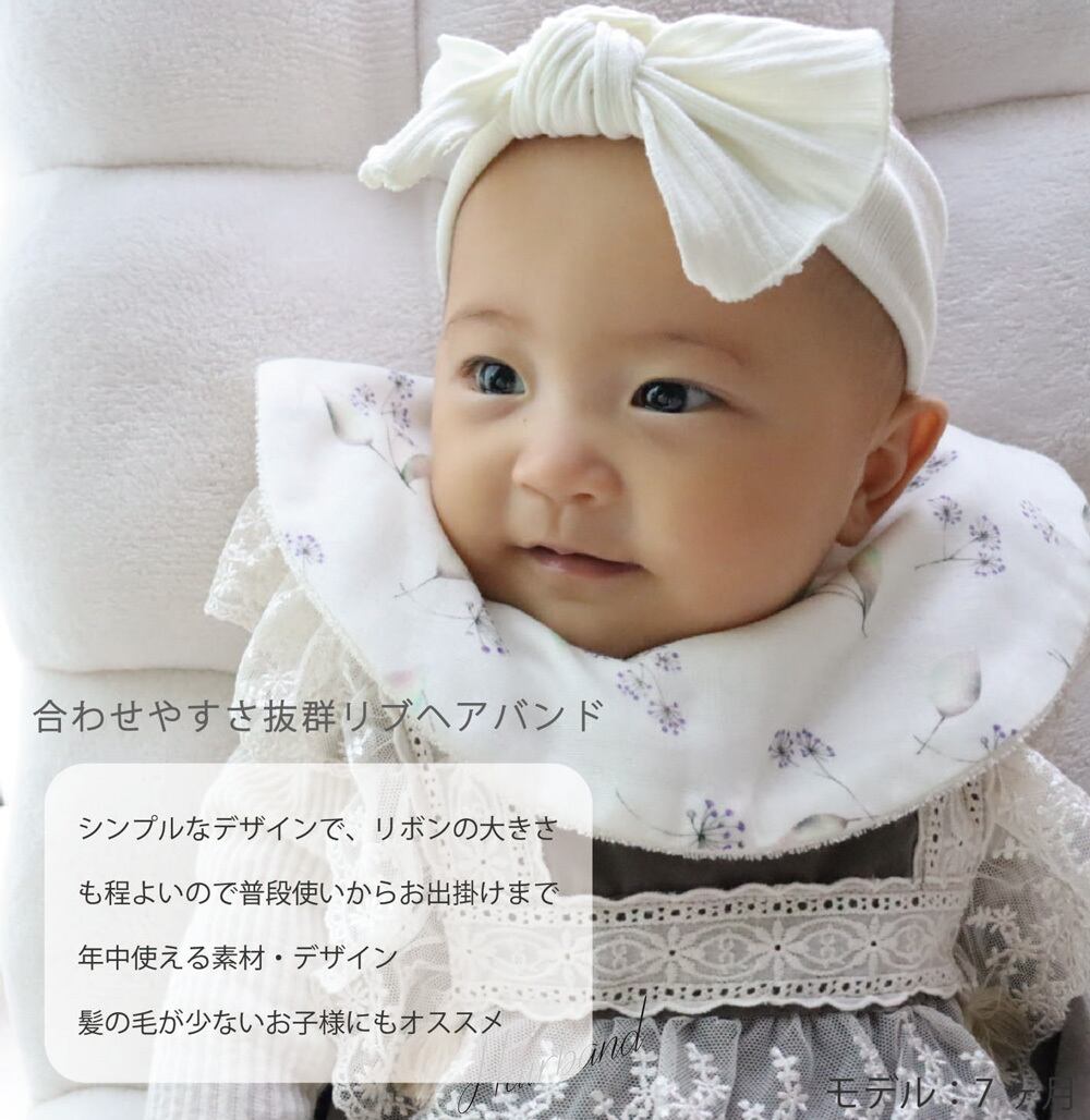 ロングセラーのリブヘアバンドは伸縮性があり3ヵ月頃から3歳くらいまで使用できます。