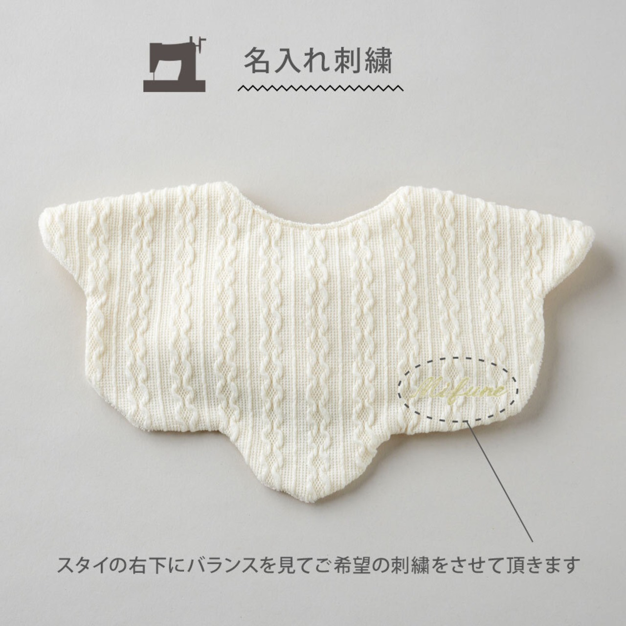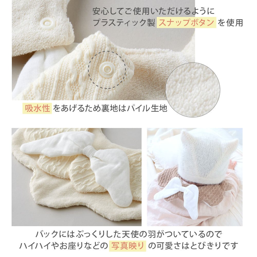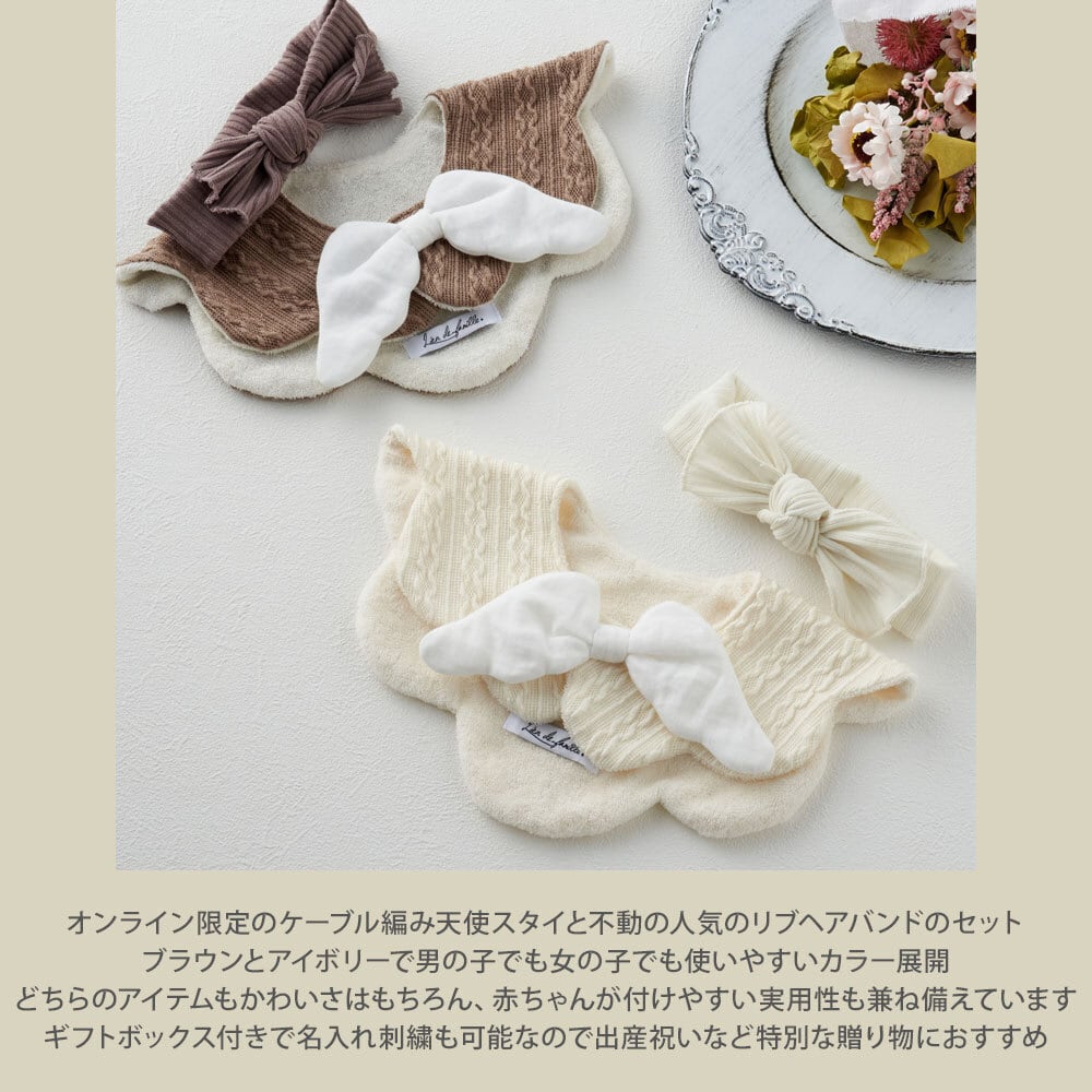 \人気のアイテムがセットに!/ケーブル編み天使スタイ・リブヘアバンドセット ビブ よだれかけ 3ヵ月 4ヵ月 5ヵ月 6ヵ月 ハーフバースデー 写真撮影 天使 スタイ ベビー ヘアバンド ギフトセット 大判 名入れ 出産祝い 5000円 ケーブル編み 羽 赤ちゃん 男の子 女の子 名前入り 刺繍 スナップボタン 可愛い おしゃれ 新生児 首回り ギフト プレゼント 全2色 リヤンドファミーユ Lien de famille