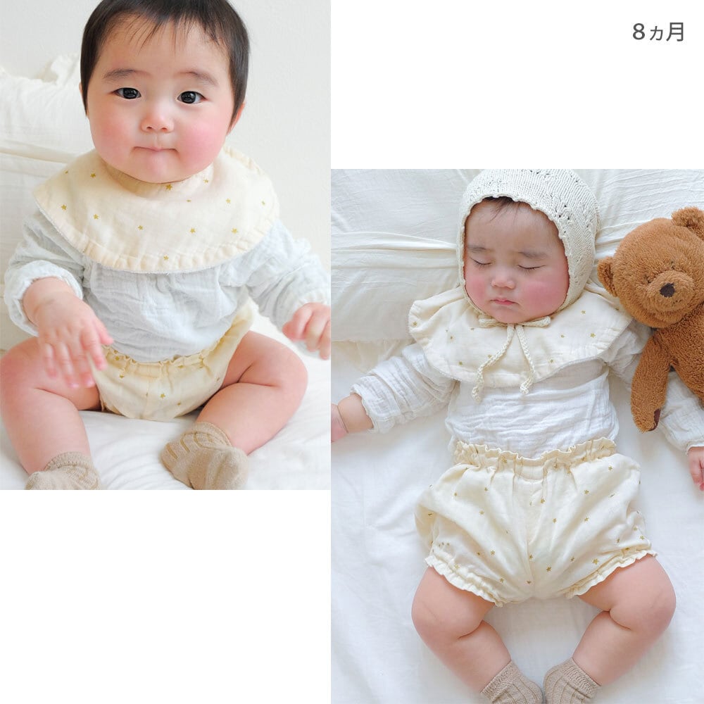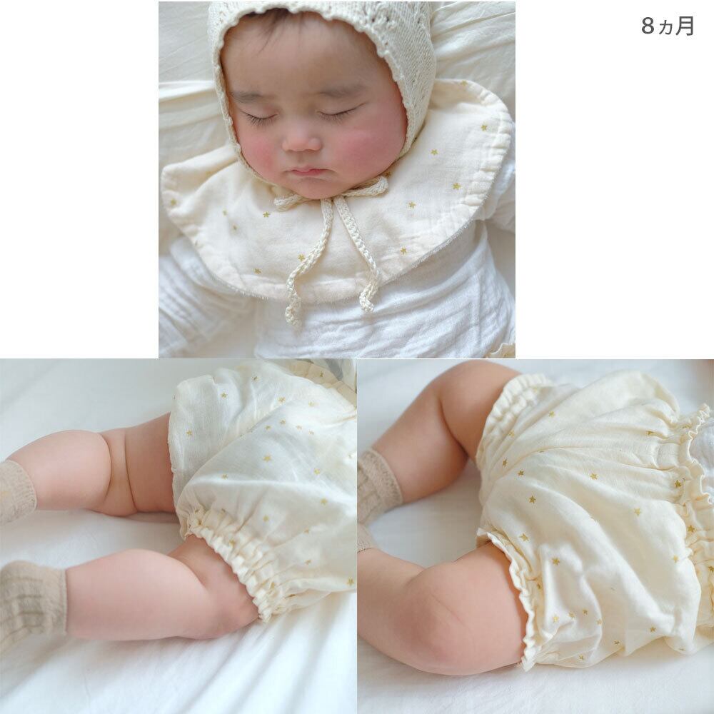 \日本製柔らかガーゼの3点セット/まぁるいスタイ・ブルマ・スターラトル ギフト セット ラメスターラメチェリー ビブ スナップボタン めくれない 名前入り 出産祝い ベビー 日本製 スタイ ブルマ ラトル 3点 ギフトセット 5000円 星柄 さくらんぼ柄 2人目 男の子 女の子 名入れ ギフト 赤ちゃん 新生児 3ヵ月 6ヵ月 プレゼント 綿100% ホワイト ピング Lien de famille リヤンドファミーユ