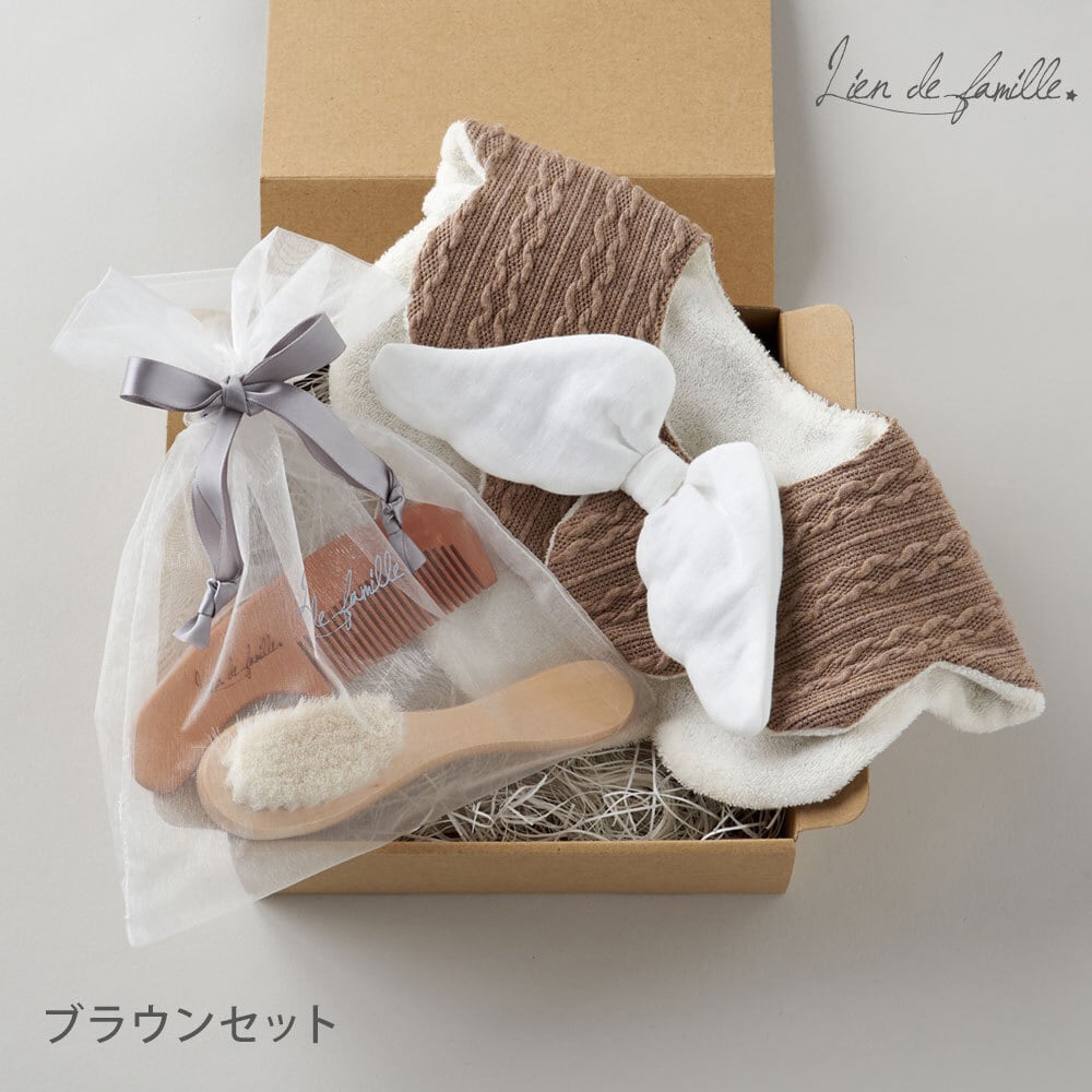 Lien de familleの代表商品のもこもこ天使の羽スタイとベビーウッドブラシセット