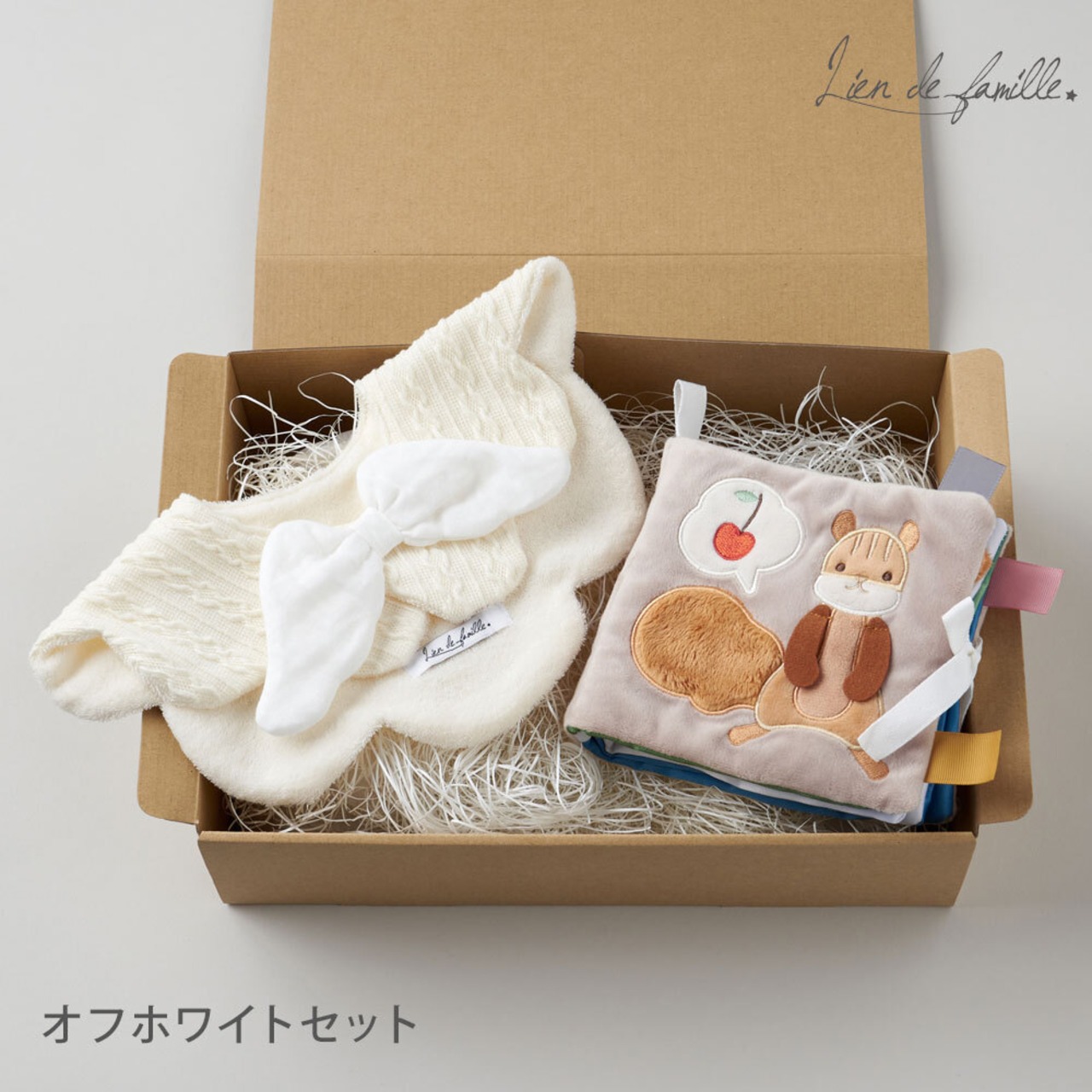 Lien de familleの代表商品のもこもこ天使の羽スタイと物語を想像しながら五感を使って楽しめる仕掛けいっぱい布絵本のギフトセット